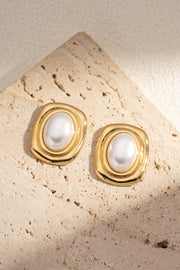Boucles d’Oreilles Carrées Perle Blanche Cadre Doré Acier