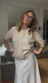Doté de manches courtes et d’une coupe droite, il offre un équilibre parfait entre style décontracté et élégance contemporaine. La rangée de boutons frontaux confère une finition soignée, tandis que la maille texturée assure un tombé souple et féminin.