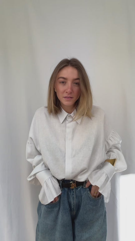 La chemise Miwi est un incontournable pour toute garde-robe chic. Confectionnée à partir de 55 % de lin et 45 % de viscose, elle offre une texture légère et agréable au toucher, parfaite pour les journées ensoleillées. Ses manches délicatement ornées de volants ajoutent une touche féminine et élégante, tandis que les boutons sur les manchettes apportent une finition soignée. Les boutons du devant sont astucieusement cachés, créant une silhouette épurée, et un bouton décoratif se trouve tout en haut de la chemise, ajoutant une note de sophistication. Que ce soit pour une sortie décontractée ou une occasion spéciale, la chemise Miwi saura vous mettre en valeur avec style.